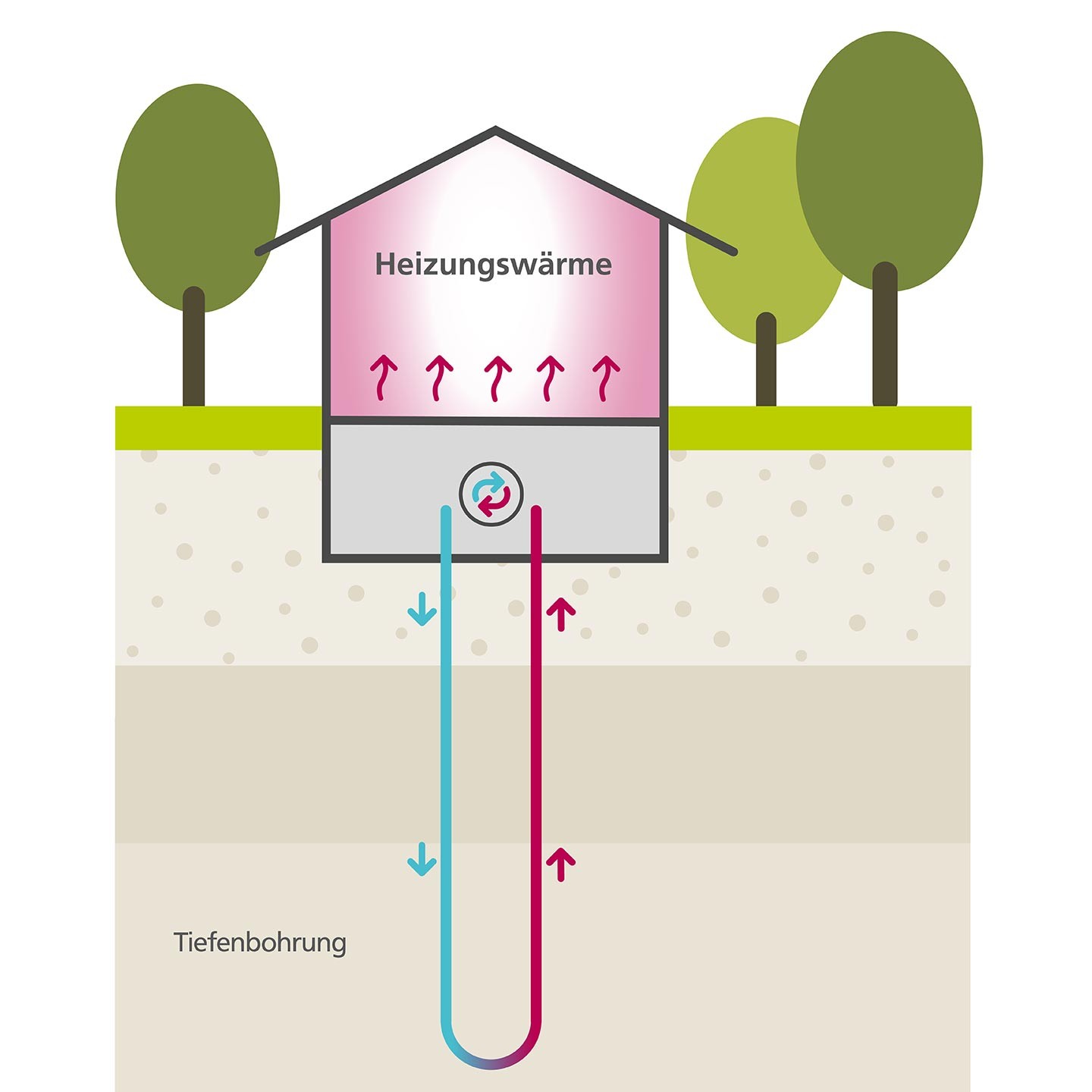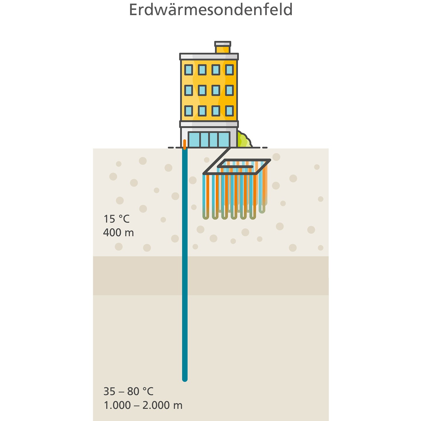 Geothermie macht sich diese Erdwärme zunutze. Dabei unterscheiden wir zwischen oberflächennaher, mitteltiefer und tiefer Geothermie. Außerdem gibt es verschiedene Wege, über die man die Erdwärme nutzbar machen kann: aus dem Erdreich, aus Tiefenwasser, das in bestimmten Gesteinsschichten zirkuliert oder aus mit Wasser gefüllten Stollen, wie die von ehemaligen Bergwerken. Erdwärme ist unabhängig von Wetter oder Jahreszeit jederzeit verfügbar.