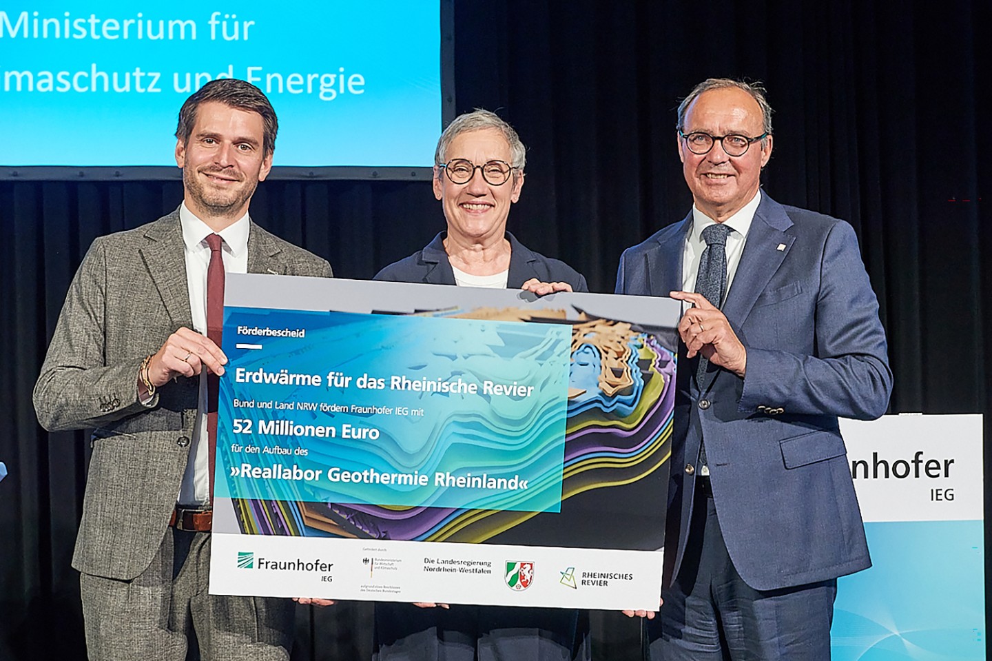 Die Parlamentarischen Staatssekretärin bei der Bundesministerin für Wirtschaft und Energie, Gitta Connemann: »Die Umstellung des Fernwärmenetzes auf CO₂-freie Quellen ist eine anspruchsvolle Aufgabe – und bietet gleichzeitig eine wichtige Zukunftsperspektive für das Rheinische Revier. Die geplante Abschaltung des Kohlekraftwerks Weisweiler im Jahr 2028 stellt einen Einschnitt dar, der tragfähige Lösungen für eine nachhaltige Wärmeversorgung erfordert. Das »Fraunhofer Reallabor Geothermie Rheinland«, das nun seinen Förderbescheid erhält, soll dies bewerkstelligen. Es soll aufzeigen, wie moderner Klimaschutz, wirtschaftliche Vernunft und regionale Stärke miteinander in Einklang gebracht werden können. Das Reallabor ist ein technologischer Leuchtturm der ökonomisch tragfähigen, ökologisch sinnvollen und sozial ausgewogenen Transformation – und ein Beispiel gelungener Zusammenarbeit von Bund und Land im Strukturwandelprozess.«